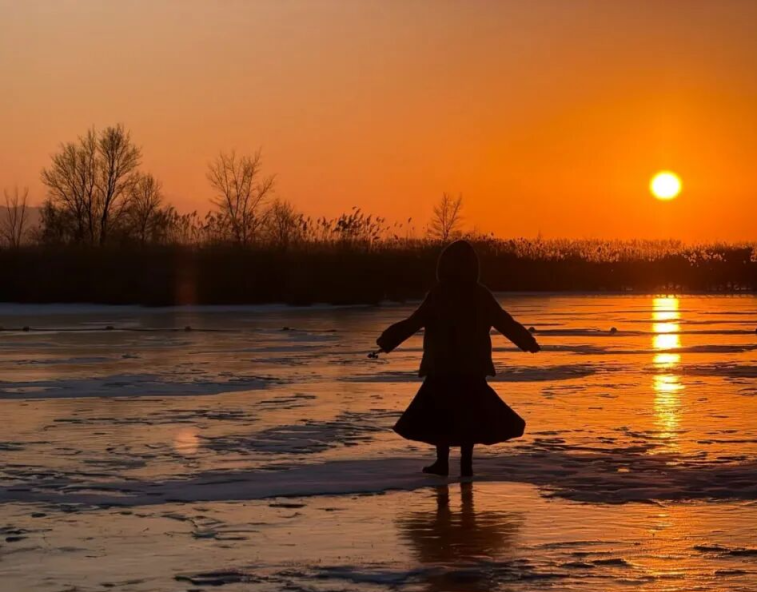 穿搭建议:浅色系衣物或毛衣,与金色湖景形成温柔呼应