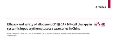 本研究为全球首次同种异型CD19 CAR-NK细胞治疗系统性红斑狼疮人体研究,为目前缺乏有效治疗手段的SLE等自身免疫病患者提供了新的治疗选择。