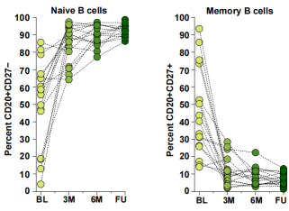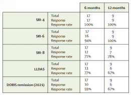经过治疗,超过1年随访的患者中,67%的患者实现完全Doris缓解和达到狼疮低疾病活动度,绝大部分患者实现B细胞免疫重置