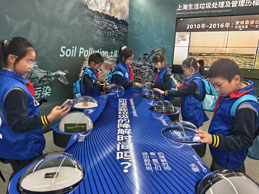 上海建平临港小学组织学生走进上海城投老港基地的科普馆探秘城市垃圾处理 杨建正 摄