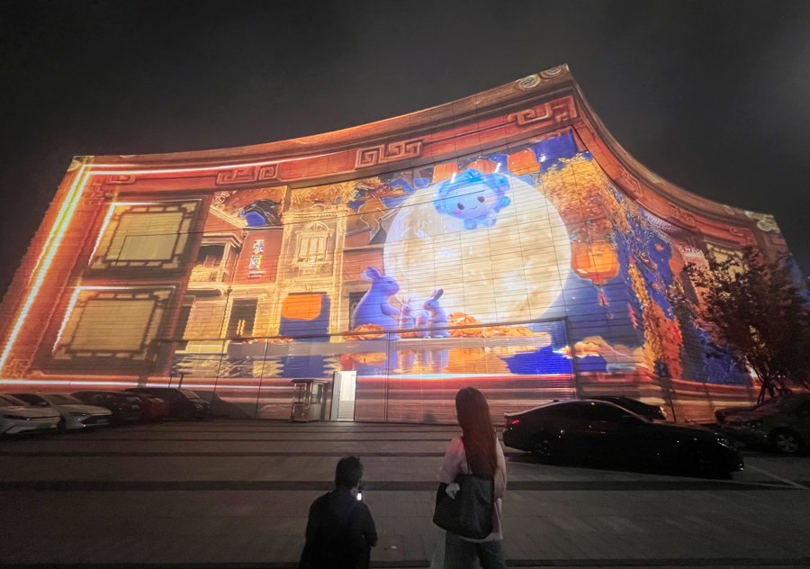 上海国际光影节的建筑投影秀 新民晚报记者 周馨 摄