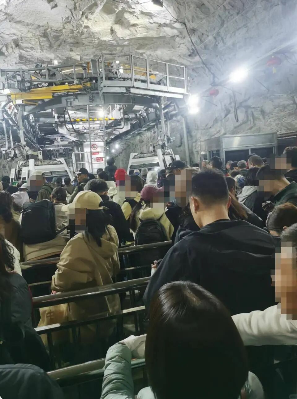 索道停运时,来自广西的游客张叶(化名)正在缆车内,“运行到一半时突然就停了,大概30分钟后才恢复正常,走得很慢。”张叶表示,当时还是有点吓人的,索道起点处至少还有百余名游客滞留。