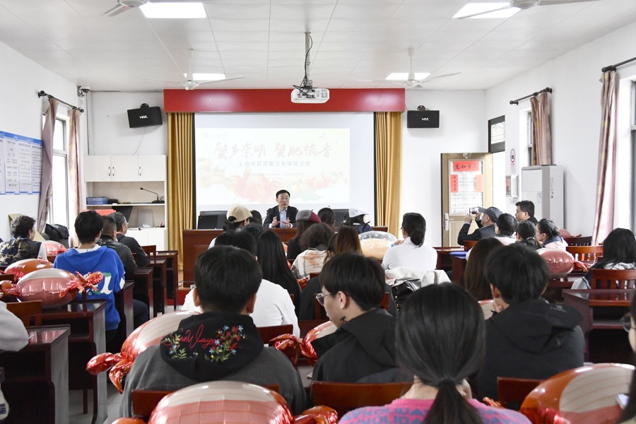 崇明,不仅是上海的生态绿肺,更是孕育优质河蟹的“天然沃土”。这场“舌尖与指尖并重、知识与趣味同行”的体验之旅,首先由上海海洋大学宁波副研究员的有趣科普开场。