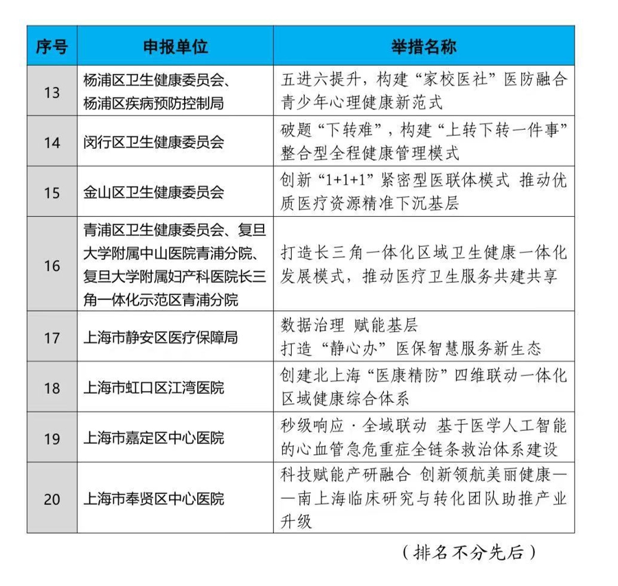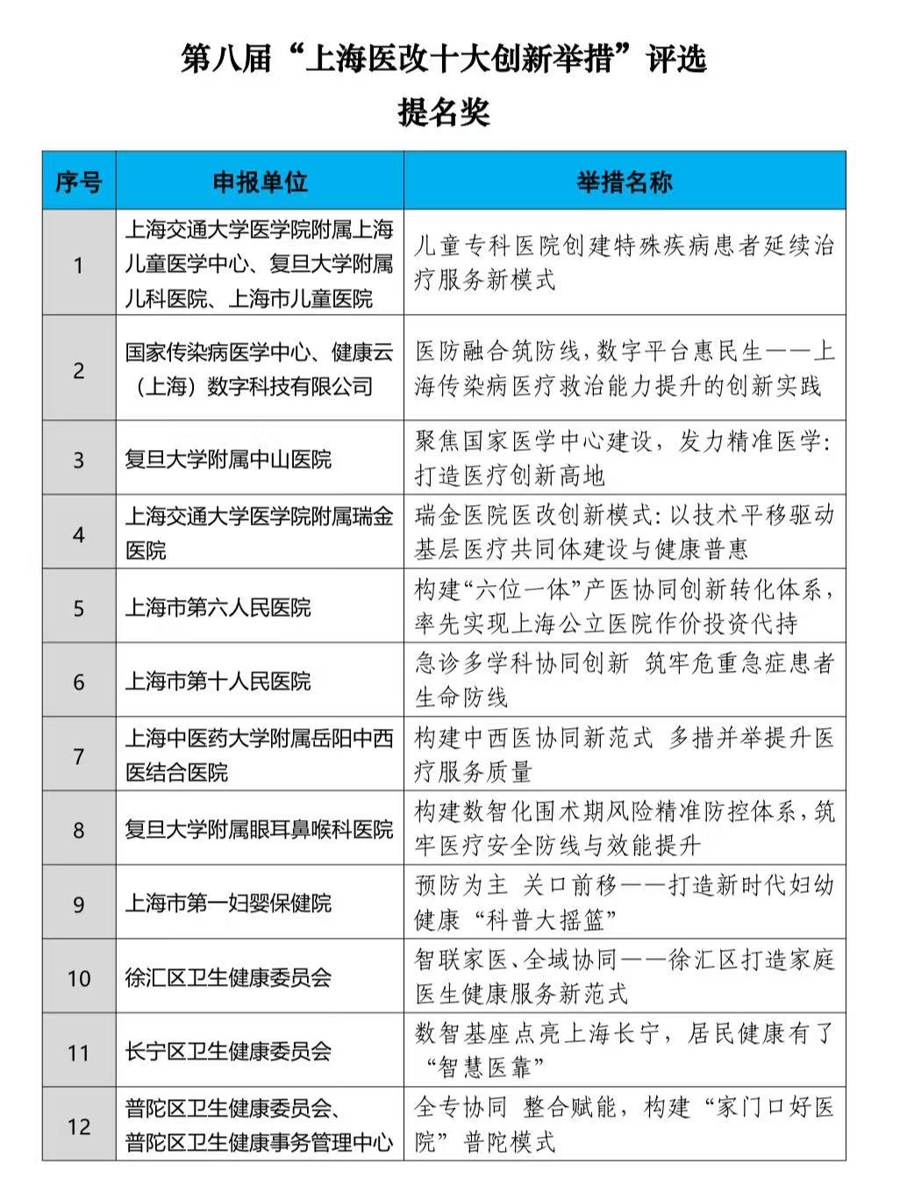 “上海医改十大创新举措”由上海市卫生健康委、上海市医保局、上海市药监局指导,由《解放日报》联合上海市卫生和健康发展研究中心组织开展,上海市健康促进中心、上海市卫生经济学会协办。