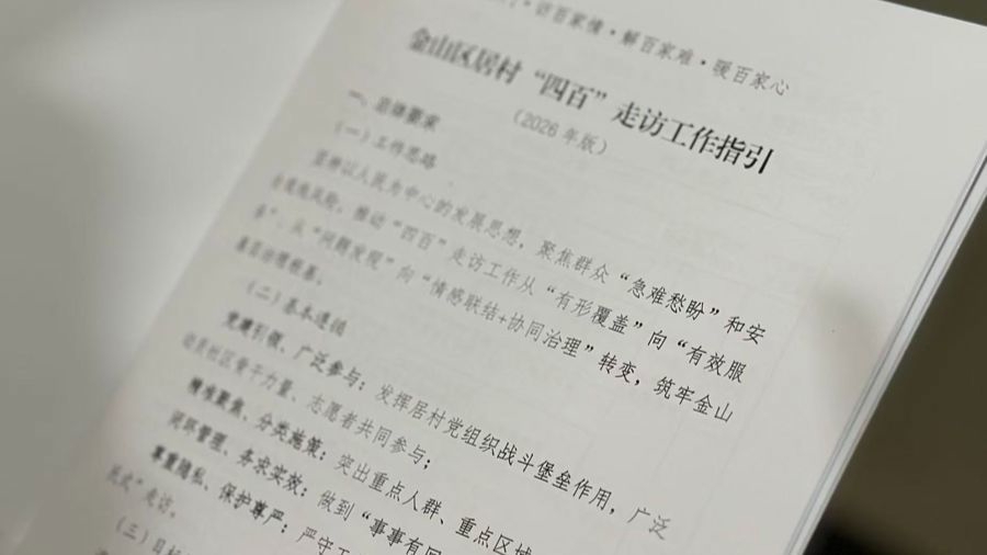 从2024年发布居村组织为民服务“三张清单”,到制定2025年居村“四百”走访“三访一评估”,再到如今制定《指引》,金山区打出了一套环环相扣的制度“组合拳”,不仅厘清了服务职责,更细化了走访标准,有效提升了群众工作的实效。