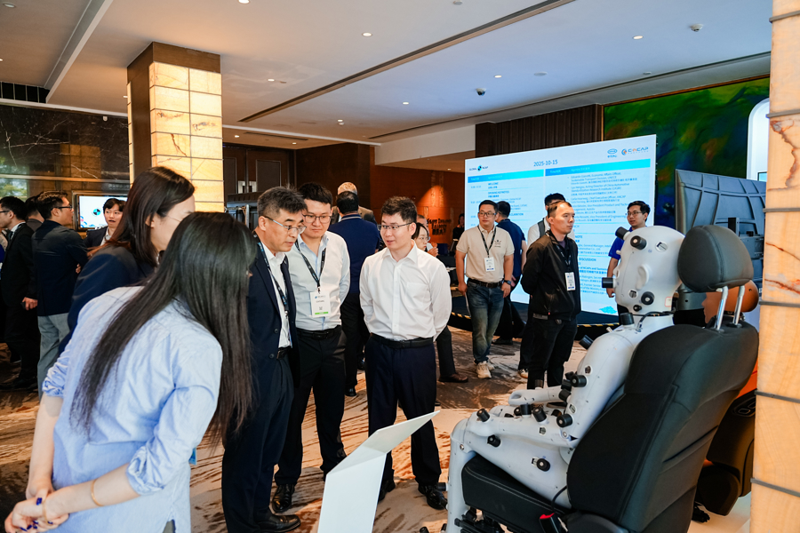 作为东道主,中汽中心带来了中国体征碰撞假人、中国体征热舒适假人、中国特征主动安全目标物等自研技术装备,并现场展出C-NCAP碰撞试验后车辆,吸引参会代表观摩探讨。