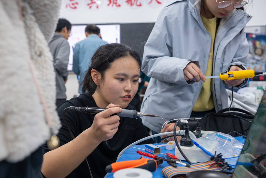 23岁的孔祥祎是个不折不扣的科幻迷。作为哈工大“思飞科幻社”成员,他高中就看完了《三体》所有系列丛书。自动化专业的本科背景让他对宇宙的想象始终带着科幻色彩。“以前总在小说里看人类接收外星信号,没想到有一天能亲手尝试接收卫星信号。”这是他第一次接触无线电,从连接导线时的手抖,到调试天线时的反复校准,这个科幻迷把对星空的热爱,变成了每一个实操细节里的较真。孔祥祎激动地说:“今晚有同学引用电影《宇宙探索编辑部》的台词说,大家收到的信号,哪怕只是白噪声,那也不是普通的雪花点,而是宇宙诞生时的余晖。”
