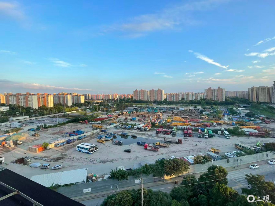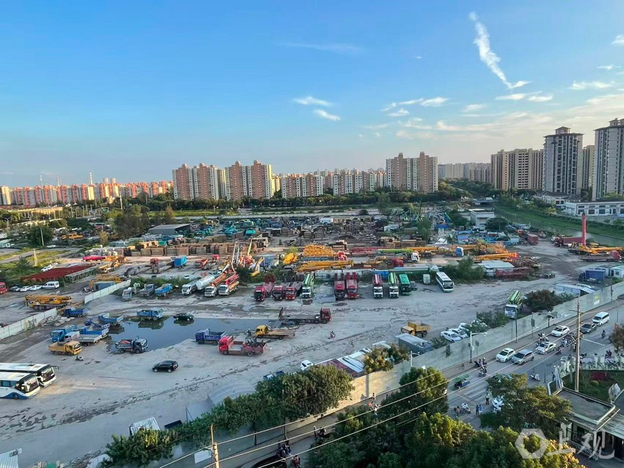 新民晚报记者实地走访发现,陈先生所在的银河新都南区与这片场地仅隔着一条老沪闵路,小区与一所小学相邻,学校进出大门也朝向老沪闵路。站在居民楼顶楼,记者看到靠莲花南路一侧是卡丁车俱乐部,仅占据整个场地的很小一块面积。剩余地方,则停满了大巴、叉车、吊车等大型车辆。接着,记者走进场地内看到,除了卡丁车俱乐部、停车场,里面还有废品回收站、羽毛球馆等,业态混杂。场地地面不太平整,有的区域随意堆放着木材、砂石等建筑材料,砂石更没有防尘网覆盖。