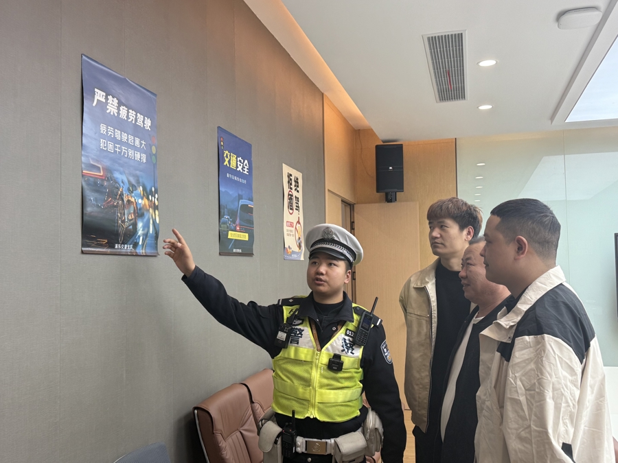 除了生活保障,司机之家更被打造成了常态化的交通安全培训基地。警方充分利用司机充电、休整的碎片化时间开设专属课堂,由民警面对面开展交通安全宣传。从司机之家大门口到餐厅走廊,从宿舍楼道到党建活动室,随处可见的“切莫疲劳驾驶,平平安安回家”“平和心态,不开赌气车”等警示标语,让交通安全理念融入司机日常休憩的每一个角落,提醒着大家“安全永远是第一位”。